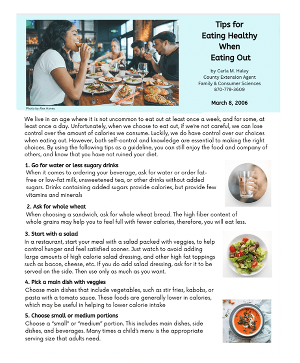 Purpose: The article offers practical tips and strategies for dining out at restaurants or other places away from home. I aimed to create a clear and informative piece, featuring eye-catching images to draw in readers.